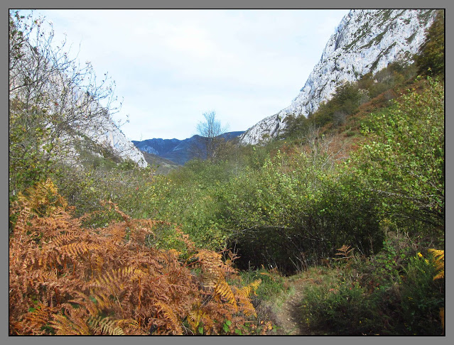 hasta que llega a su final en unos prados bastante tomados de vegetación y helechos aunque en este momento del año, están caídos y resulta más fácil seguir el leve sendero que con tendencia a subir hacia la derecha